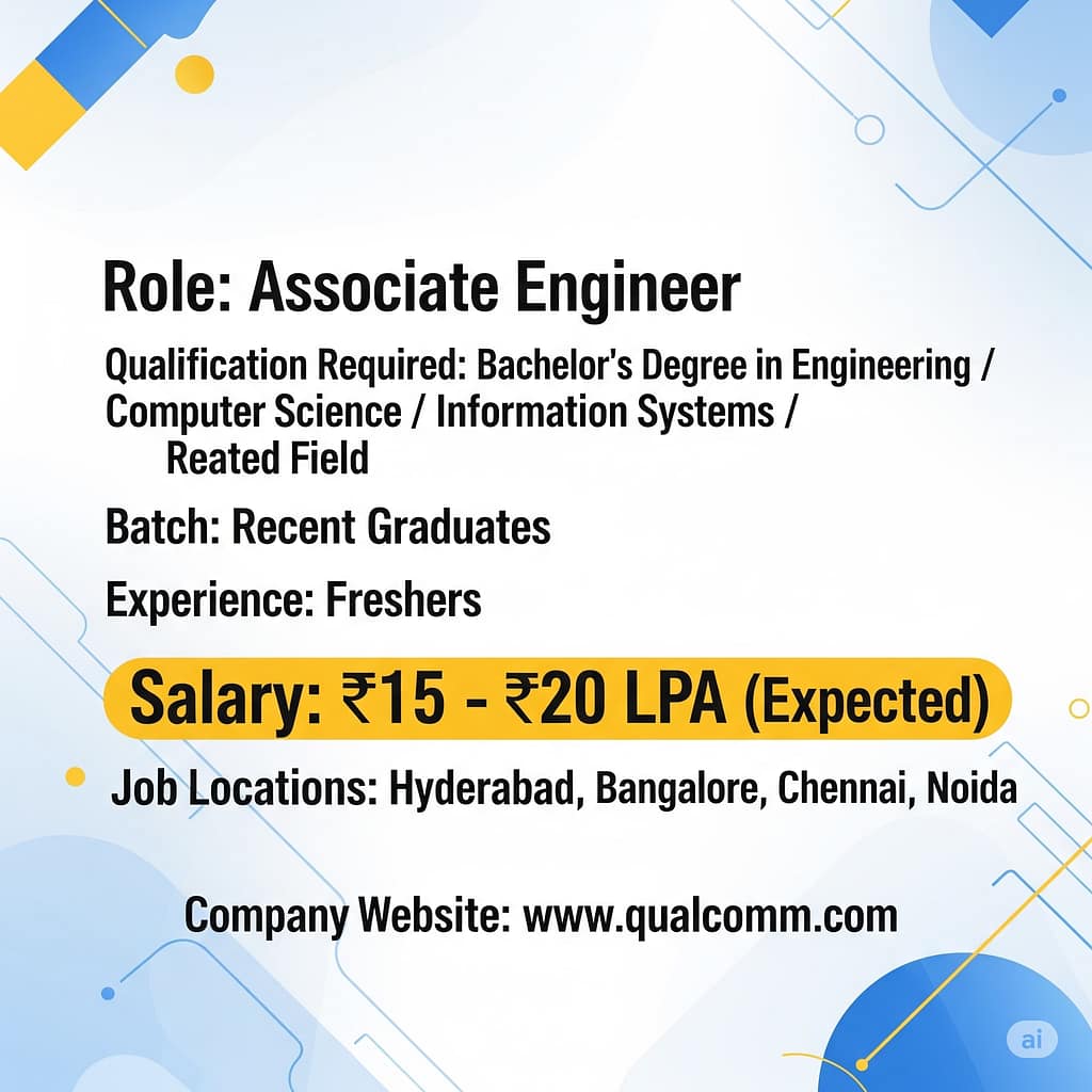 Qualcomm is inviting applications from recent graduates for the position of Associate Engineer through its Off Campus Drive 2025. If